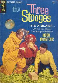 Three Stooges [Moe Howard; Larry Fine; Curly Joe DeRita]; car salesmen; moon monsters; robot