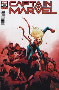 Captain Marvel is attacked by a mysterious woman in Vox Supreme's copy of Carol's suit. After defeating her attacker, Carol takes her to Tony Stark for extraction from the suit. On learning from the now free Phyla-Vell that Vox Supreme is collecting Marvels, Carol checks on Ms. Marvel and finds four more attackers.