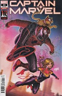 Captain Marvel is attacked by a mysterious woman in Vox Supreme's copy of Carol's suit. After defeating her attacker, Carol takes her to Tony Stark for extraction from the suit. On learning from the now free Phyla-Vell that Vox Supreme is collecting Marvels, Carol checks on Ms. Marvel and finds four more attackers.