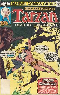 Part 9 (conclusion) of Edgar Rice Burroughs' "Tarzan and the Jewels of Opar" adaptation. Most inking seems to be done by Tony DeZuniga, with help from Neal Adams and others. Page by page inking credits: 1 Adams; 2 DeZuniga, ?; 3 ?; 4 DeZuniga, ?; 5 DeZuniga; 6 Adams, ?; 7 DeZuniga; 8 DeZuniga, Adams (Tarzan figure in last panel); 9 DeZuniga, Adams (Tarzan figures); 10 DeZuniga, Adams (top tier figures by Adams); 11 DeZuniga, Adams? (Tarzan face); 12 DeZuniga; 13 DeZuniga, Adams (Tarzan figure panel 1); 14 DeZuniga, Adams (panel 3 and various); 15 DeZuniga; 16 DeZuniga (panel 4), Adams (panel 7).