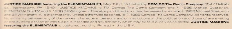 Elementals [Monolith [Tommy Czuchra]; Fathom [Becky Golden]; Vortex [Jeff Murphy]; Morningstar [Jeanette Crane]]; Justice Machine [Titan [Jemin Osk]; Blazer [Mitrian Flynn]; Demon [Gabel Nevin]; Challenger [Jaime Conrad]; Diviner [Tessei Molleng A-Conrad]; Talisman]; Darkforce; Tuana Phapes (mentioned); Lawrence Cartajel; Monica; Laser Crew