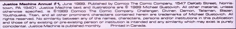 The Justice Machine [Challenger [Jaiime Conrad]; Diviner [Tessei Molleng A-Conrad]; Blazer [Mitrian Fynn]; Demon; Talisman; Titan]; Youthquake [Robert Maxinor]; Ms. Liberty; Maxinor; the Free Force [Night Owl; Havoc; Controller]; Night Lightning (cameo)