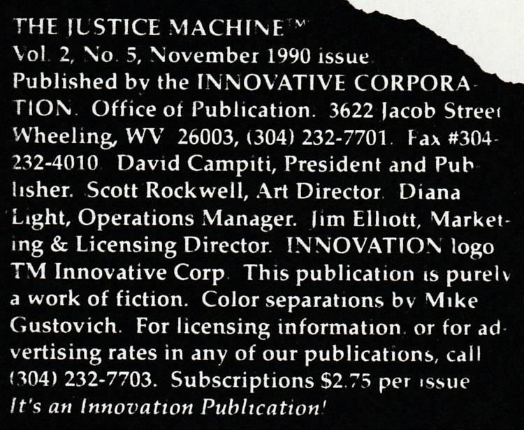 This story follows the "Hero Alliance and the Justice Machine" one-shot (Innovation, 1990).