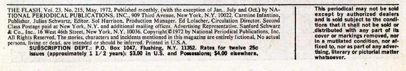 Credits for script, pencils and inks confirmed from Julius Schwartz's editorial records, provided by DC Comics. Schwartz's records only credit Giordano on inks, but credit in the book itself is "Art: Irv Novick & Frank McLaughlin plus...Dick Giordano." The Giordano credit appears squished into the credit box, as if it was added later.