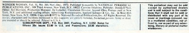 New letters page title, "Princessions," came from the winning entry in a name-the-letter-column contest. It was written by Anthony Kowalik of Harvey, Illinois. Editorial by Denny O'Neil discusses the creators he has worked with, notes that this is his last issue and details his upcoming projects.