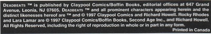 Indicia Publisher: Claypool Comics/Boffin Books