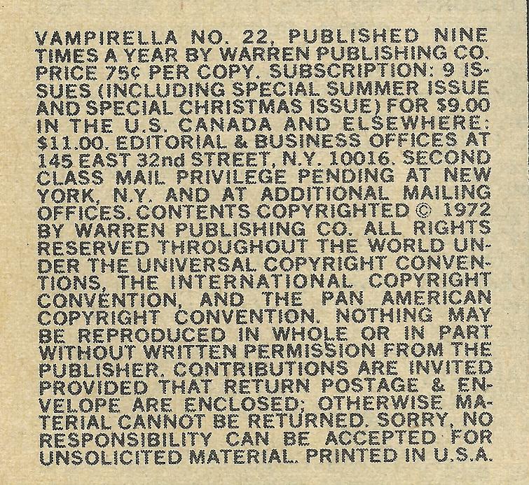Vampirella #2 published October 1973