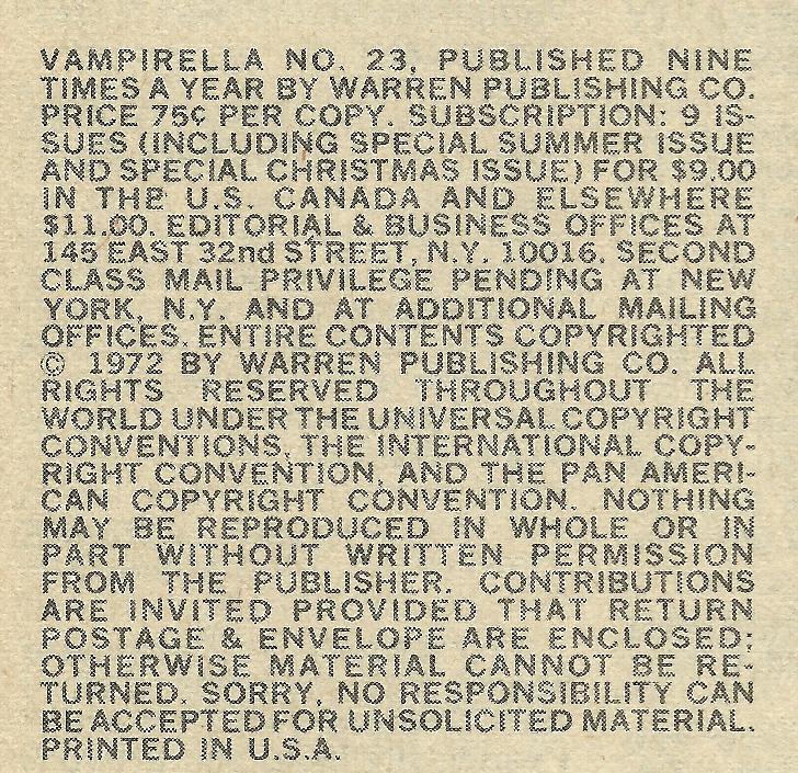 Vampirella #12 published July 1974
