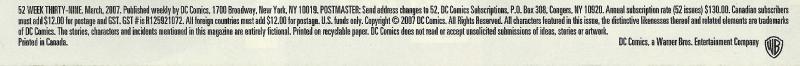 [inside front] got milk?; [5] In house -- Batman: Year One (1/2 page) & abovetheinfluence.com (1/2 page); [7] In house -- Batman: Year 100 (1/2 page) & abovetheinfluence.com (1/2 page); [11] Killzone Liberation; [13] Magic: The Gathering; [18] In house -- Shazam! The Monster Society of Evil; [21] Destroy All Humans! 2; [24] In house -- The Brave and the Bold; [26] In house -- Superman/Batman vs Aliens/Predator; [28] In house -- DC Direct 52 action figures; [inside back] International Fight League; [back] US Army