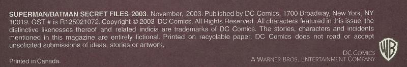 Disclose Notes: Title is Superman / Batman Secret Files & Origins 2003 on cover and table of contents only.