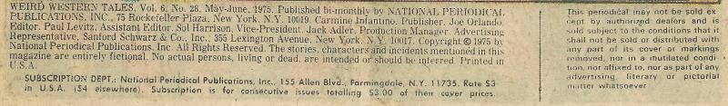 Jonah Hex; Clem; Hauschel Gang; Jake Hauschel (dies); Matt Borden (dies); Luther (dies); Macy (dies); Nat Duff (dies); Mister Preston; Jim; Ben; Sims (dies); Duke (dies); Doc Swazer; Cobb Wisner (dies); Mrs. Jones (mentioned); Bill
