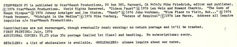 Advertisement for back issues of Star*Reach from Star*Reach Productions on inside of back cover.
