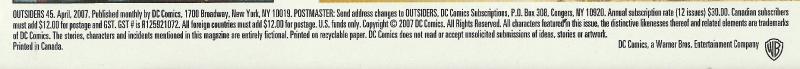 Outsiders [Arsenal [Roy Harper]; Grace Choi; Nightwing [Dick Grayson]; Thunder [Anissa Pierce]]; Red Hood [Jason Todd]; Lian Harper; Black Lightning [Jefferson Pierce]; Checkmate [Amanda Waller; Green Lantern [Alan Scott]; Mr. Terrific [Michael Holt]]; Omar; Green Arrow [Oliver Queen] (flashback); Martin Somers (flashback; deceased); Joanna Pierce (flashback; deceased); Deathstroke [Slade Wilson] (villain)
