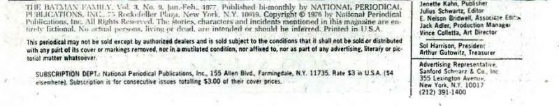 Credits for script, pencils and inks confirmed from Julius Schwartz's editorial records, provided by DC Comics.