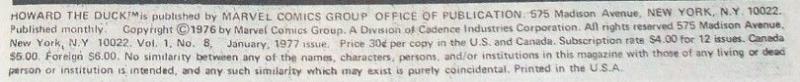 Letter from Peter Sanderson. Letters page replies and Howard the Duck Campaign Update by Steve Gerber.