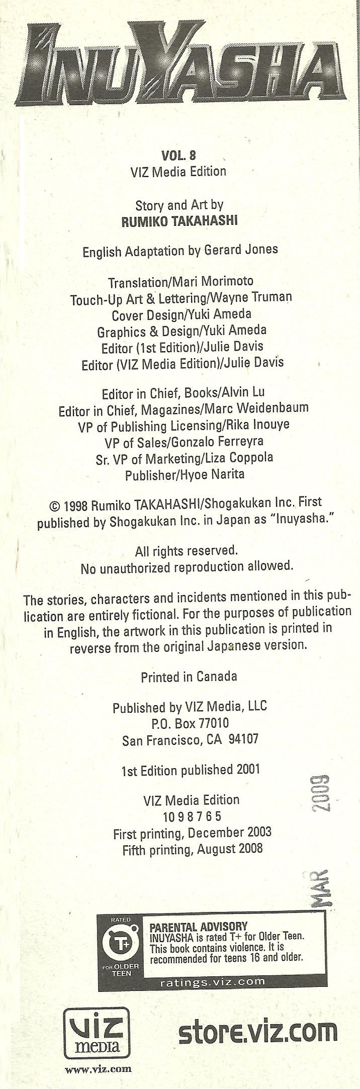 Rumiko Takahashi; Mari Marimoto (translation); Gerard Jones (English adaptation)