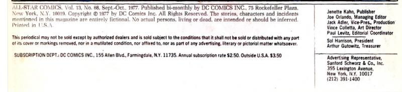 References Showcase (DC, 1956 series) #56 and All-Star Comics (DC, 1976 series) #64. Story continued in part from previous issue; story continues in part in Justice League of America (DC, 1960 series) #147-148, as well as in the next issue.
