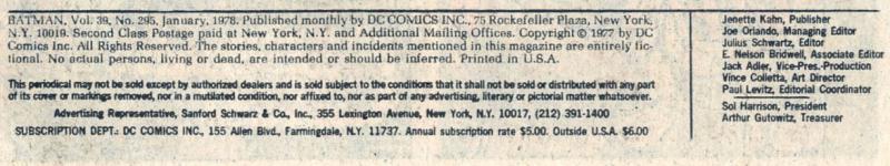 Mystery Analysts of Gotham City [Batman [Bruce Wayne]; James Gordon; Martin Tellman; Art Saddows; Kaye Daye; Danton (former District Attorney)]; David Hamton (magician); Glenn Falkenstein (mentalist); Martin Monroe (magician's apprentice); Lisa Morrow (psychic); Winston Bennett (manager); June Gold (magician's assistant, deceased)