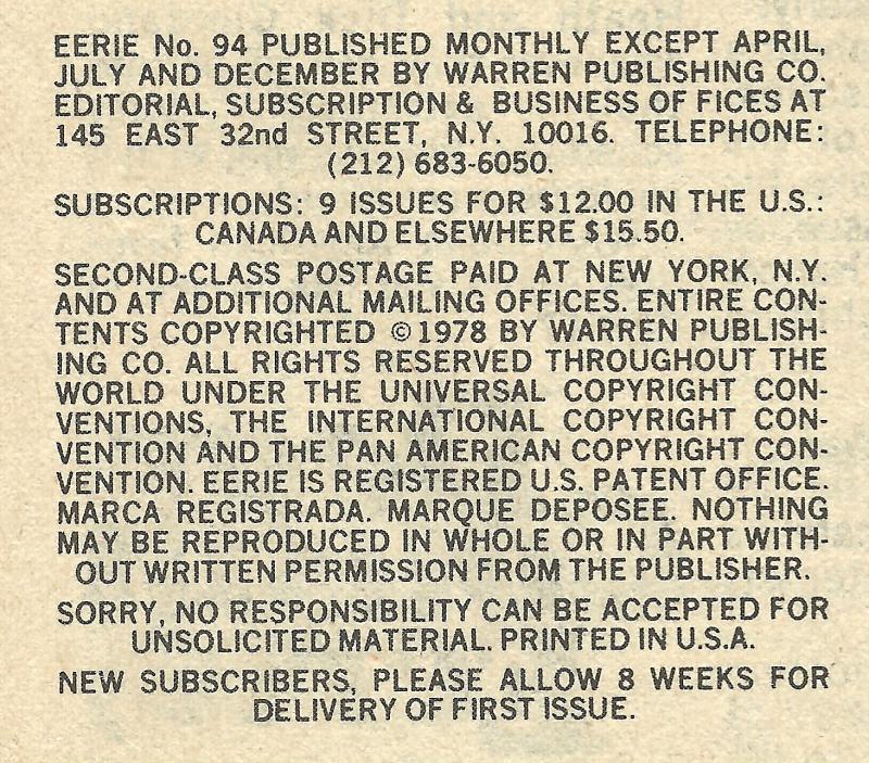 Cover featured story. Continues in Eerie (Warren, 1966 series) #95.