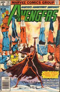 Aelfric the Mad Monk (flashback); Agatha Harkness (flashback); the Avengers [the Beast [Hank McCoy]; Captain America [Steve Rogers]; the Falcon [Sam Wilson]; Ms. Marvel [Carol Danvers]; Quicksilver [Pietro Maximoff](origin); the Scarlet Witch [Wanda Maximoff](origin, more details); the Wasp [Janet van Dyne]; Wonder Man [Simon Williams]]; Bova Ayrshire; Cagliostro (flashback); Chthon (under appearance of the Scarlet Witch, and of The Other, flashback); Django Maximoff (death); Gaea (flashback); Gregor Russoff (flashback); the High Evolutionary [Herbert Wyndham] (flashback); Janet Lyton (flashback); Janice (flashback); Jessica Drew (flashback, as an infant); Jonathan Drew (flashback); Knights of Wundagore (flashback); Magda Eisenhardt (flashback); Magnus (flashback, and also under appearance of Jonathan Drew); Meriem Drew (flashback); Modred the Mystic; Morgan Le Fey (flashback); Taboo (flashback); Grant Whittaker (flashback).