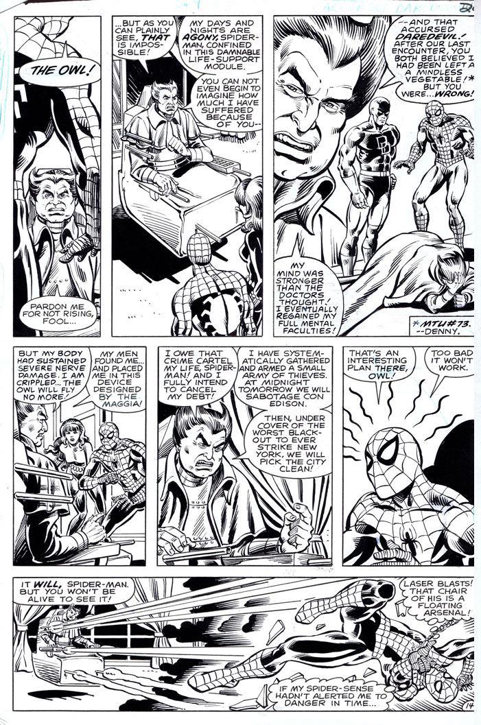 Spider-Man discovers the Widow tracking a Maggia gun shipment and they follow the villains back to their boss, the Owl, now confined to a deadly power chair replete with blasters.