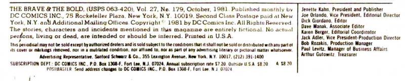 Todd Klein lettering credit from http://kleinletters.com/1981Covers.html. Colors credit provided by Anthony Tollin.