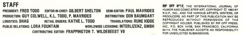 A small caption at the bottom of the final page states the story continues in the never-published Rip Off Comix #13. The story is actually continued in Fabulous Freak Brothers #8.