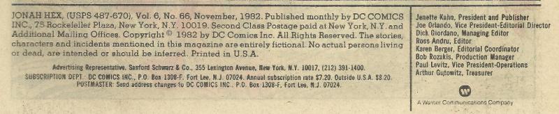 Indicia Publisher: DC Comics Inc.