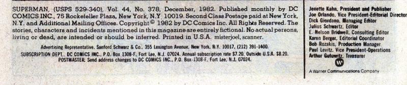 Indicia Publisher: DC Comics Inc.