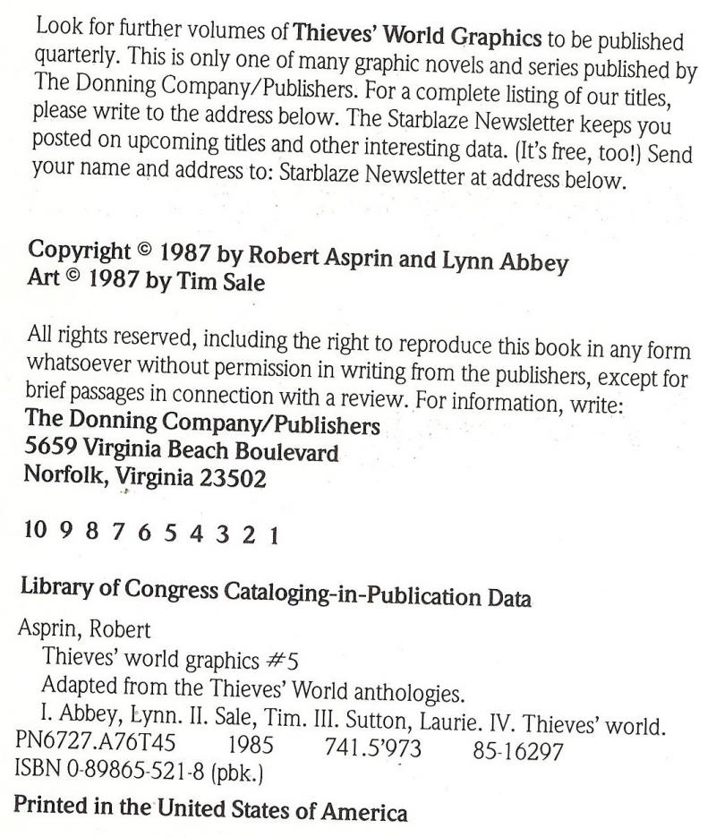 Based on the stories in Ace Books Thieves' World series of anthologies. Featuring characters and stories by Lynn Abbey, Poul Anderson, Robert Lynn Asprin, Robin Bailey, John Brunner, C.J. Cherryh, Christine DeWees, David Drake, Diane Duane, Philip Jose Farmer, Joe Haldeman, Vonda McIntyre, Chris & Janet Morris, Andrew J. Offutt, Diana Paxson, and A.E. Van Vogt.