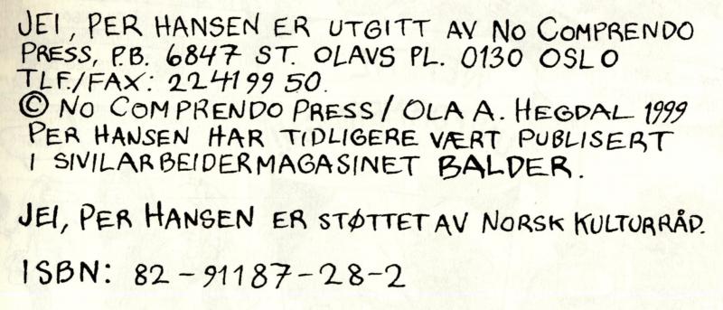For det meste ensidere som tidligere har vært publisert i sivilarbeidermagasinet Balder. En side tidligere utgitt i Serinord #[nn].