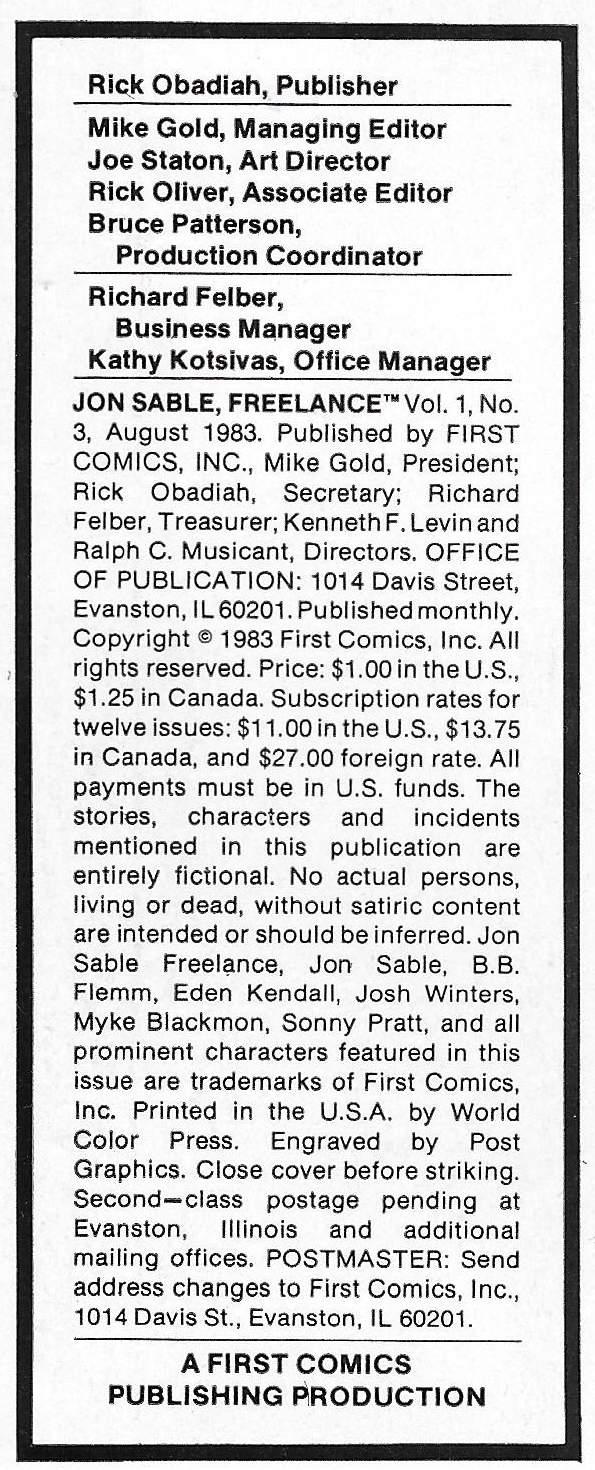 As of this moment, we're still about two weeks shy of the release of Jon Sable, Freelance #1, but we still have a couple of letters to run from our advance mailing.