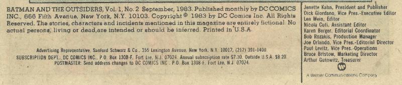 Indicia Publisher: DC Comics Inc.