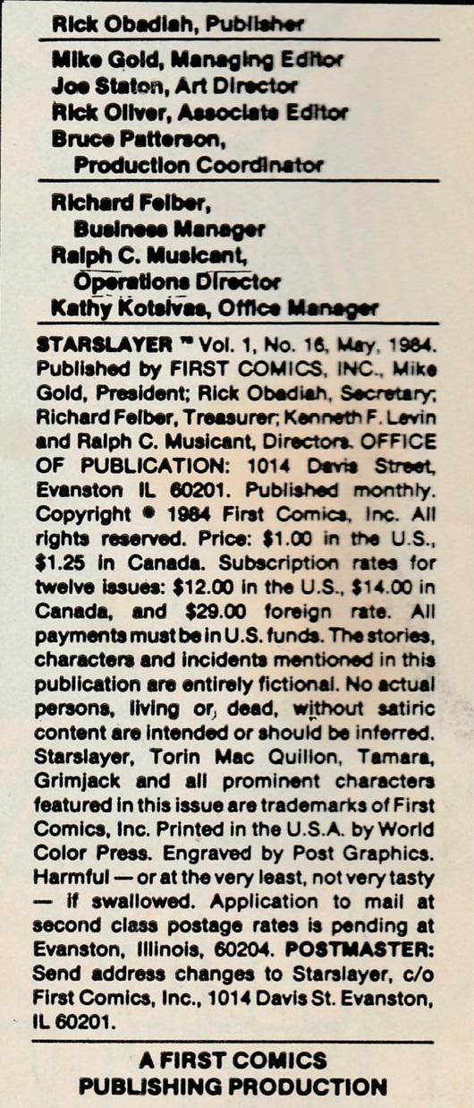 Indicia Publisher: First Comics Inc.