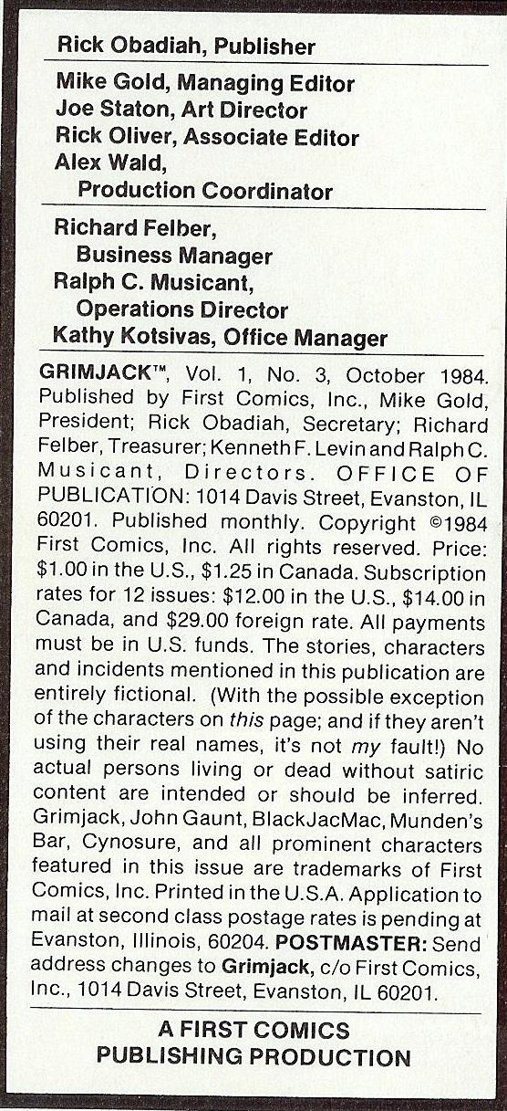 Indicia Publisher: First Comics Inc.