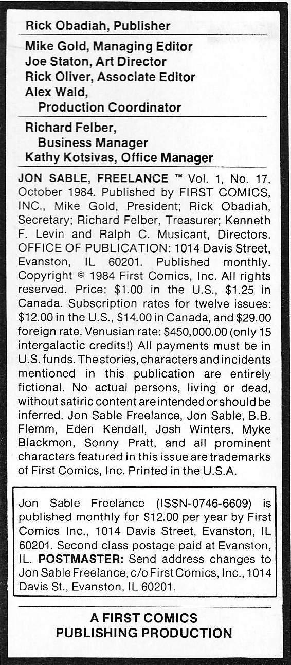 Maggie the Cat [Lady Margaret Graemalcyn]; Jon Sable [B. B. Flemm]; Grey Adler; Mischa Yurkovich; Sparrow [Williams]; Stan; Eden Kendall; Myke Blackmon; Anastasia Yurkovich; Harold; Josh Winters