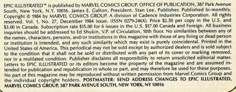 Contents and indicia information page with 4 small illustrations from story sequences.