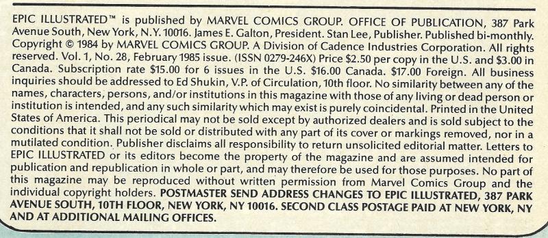 Letterers: Tom Orzechowski, Rick Parker, Joe Rosen, Janice Chiang, Richard Howell, and Gaspar Saladino. Ad: Subscription to Epic- Mike McMahon (1).