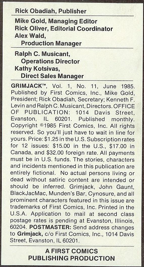 Indicia Publisher: First Comics Inc.
