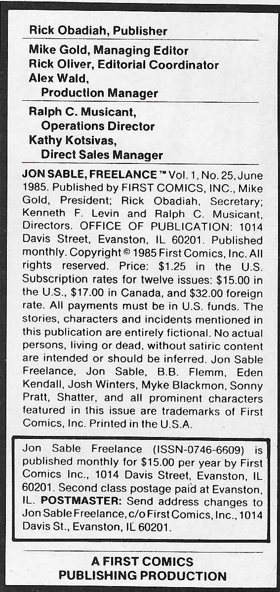 This story is continued from the one-shot Shatter Special # 1 that introduced the character, and continues here in Jon Sable 25-30, then after continues in the Shatter series, issues 1-14.
