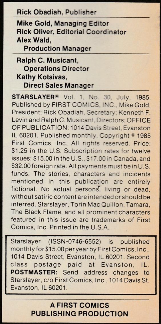 Starslayer [Torin MacQuillon]; S.A.M.; Tamara; Chris Heyman; Tomar; Pappy; Sisemund D'Orsini; Roeger; Quenten; Cesare