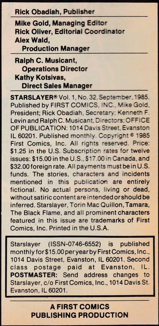 Indicia Publisher: First Comics Inc.