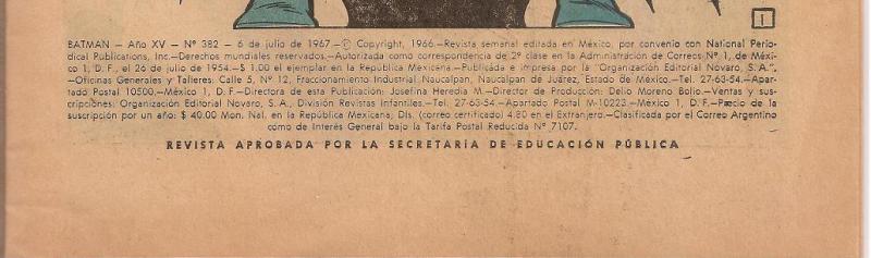 Disclose Notes: Mexican, Spanish-language reprint of DC Comics' The Brave and the Bold #67, Aug.-Sept., 1966. Revista aprobada por la secretaria de educación pública.