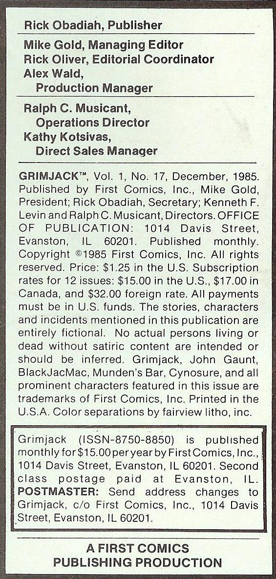 A shipping schedule was printed in an untitled newsletter from the comic book store Comics Plus in Dearborn, Michigan, published August 2, 1985, issue #1, listing this issue was scheduled to be released on August 9, 1985.