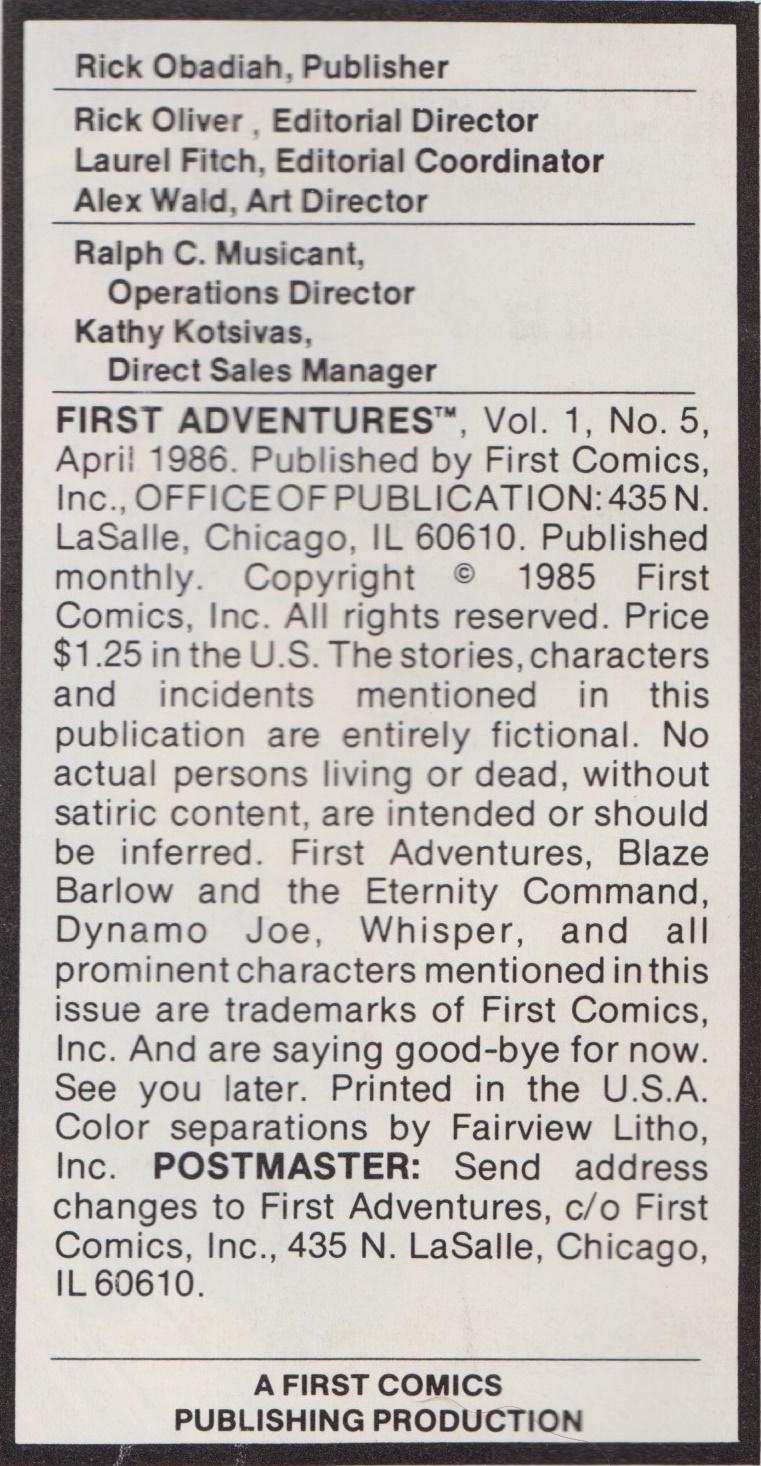 Indicia Publisher: First Comics Inc.