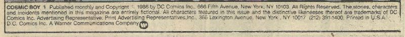 Cosmic Boy and Night Girl travel to 20th century. This follows Cosmic Boy immediately after his appearence in Legends #2.