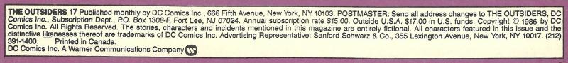 Legion of Super Heroes [Wildfire; Mon-El; Shadow Lass]; Vigilante; New Teen Titans [Wonder Girl; Cyborg]; The Outsiders [Metamorpho [Rex Mason]; Geo-Force [Brion Markov]; Black Lightning [Jefferson Pierce]; Katana [Tatsu Yamashiro]; Halo [Gabrielle Doe]]; Infinity, Inc. [Star-Spangled Kid; Obsidian; Jade; Nuklon; Silver Scarab; Fury; Northwind]