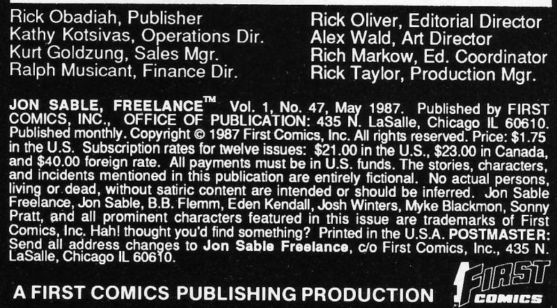 Jon Sable; Myke Blackmon; Ellen Kory; Stanley Kory; Louis P. Barnett; Ed; Willard