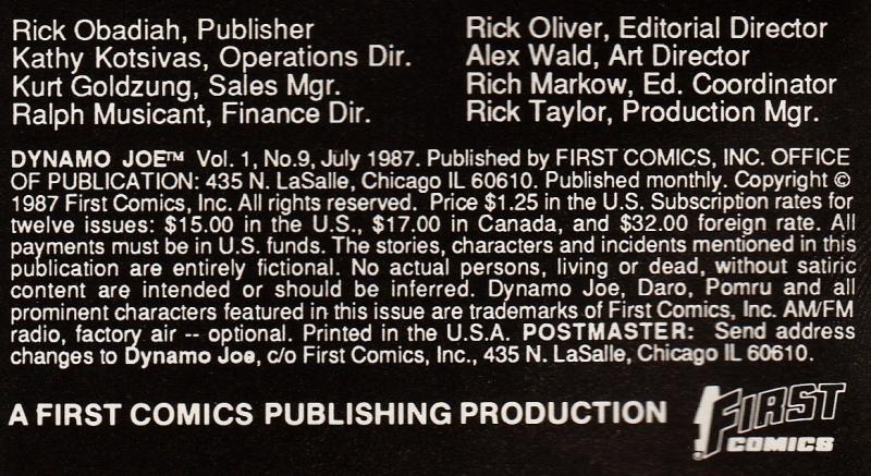 Dynamo Joe [Sergeant Elanian Daro; Private Pomru Purrrwakawaka]; Damien Kirchner; General; Colonel Vautravers; Hammond; Dolly; Bolan; Tanamara; Dr. Golliday; Dr. Von; Dr. Wow