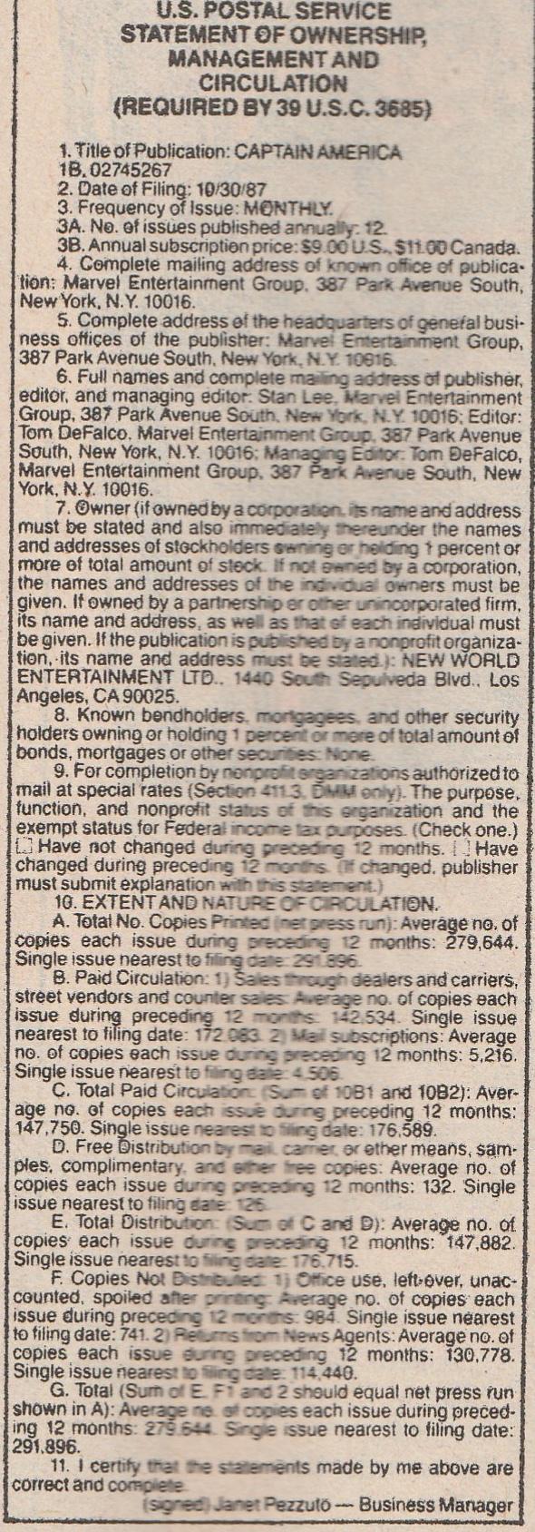 Total Number Copies Printed (net press run): Average number of copies each issue during preceding 12 months: 279,644. Single issue nearest to filing date: 291,896.